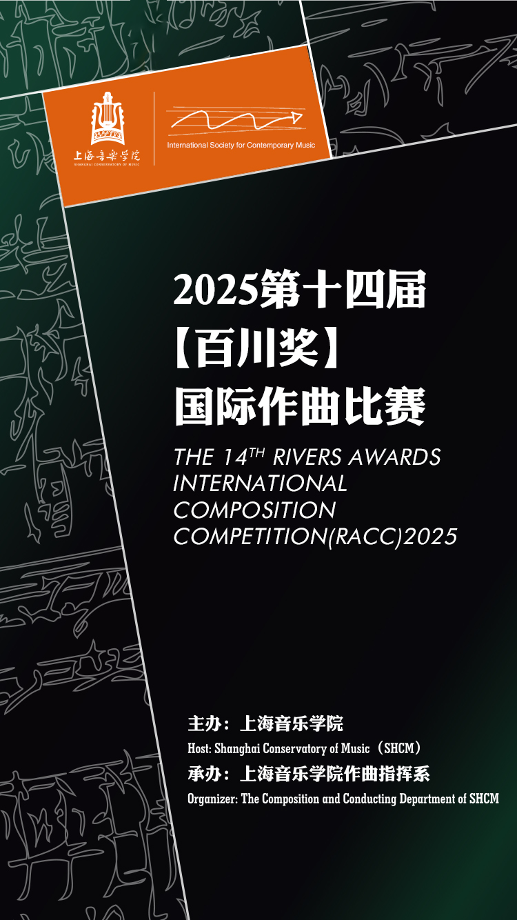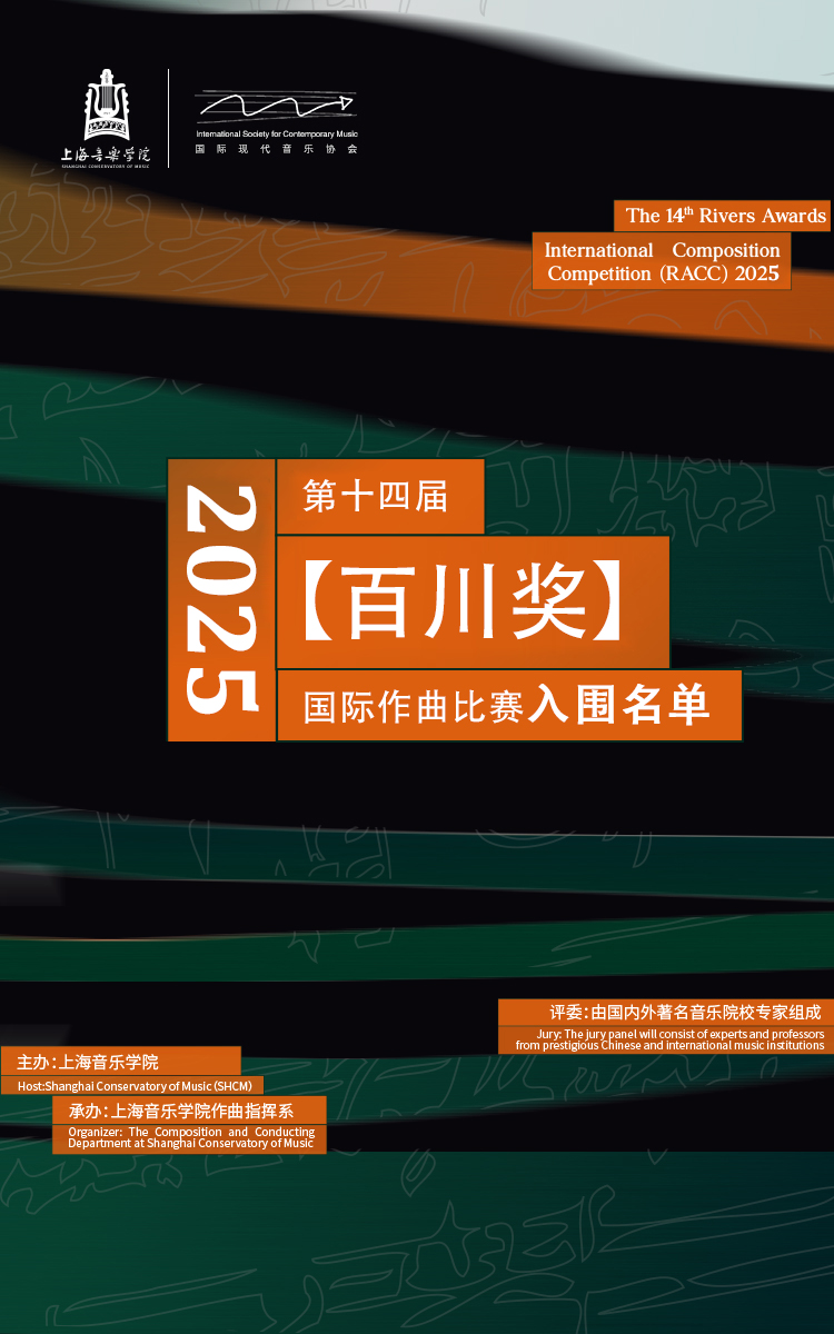 “第十四届【百川奖】国际作曲比赛决赛音乐会暨颁奖典礼”将于2025年11月20日(周四)19:30在上海音乐学院贺绿汀音乐厅举行。